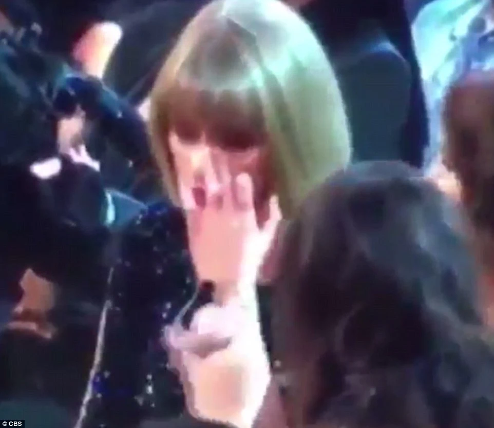 Taylor Swift was spotted wiping away tears after her Grammys opening performance. The singer mouthed 'I missed a note' to a friend behind her as she sat back down in the audience after singing Out of The Woods to the star-studded audience.
